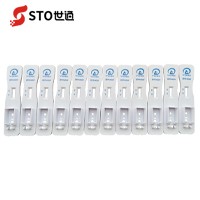 第二步,取樣后的拭子插入樣本提取管中,將拭子浸泡在樣本提取液的頁面以下至少30秒,同時用手隔著采樣管外壁擠壓拭子頭至少5次。